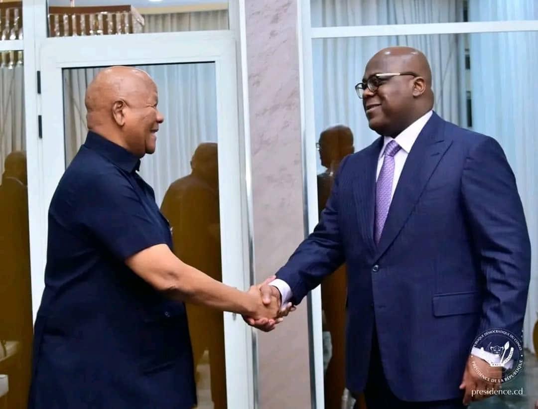Le Chef de l’Etat Tshisekedi a reçu son invitation ce lundi soir, des mains de Jeff Radebe, l’envoyé spécial du Président Cyril Ramaphosa dans la région des Grands-lacs lors d’une audience qu’il lui a accordée.
