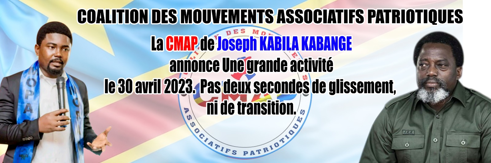 À travers une communication parvenue à la rédaction de yaelnews.net,  ce jeudi 27 avril 2023, le Président National  de la Coalition des mouvements associatifs patriotiques  ( CMAP), Kalaki Mandefu Guelord annonce une grande activité prévue pour le 30 avril prochain  » Pas deux secondes de glissement,  no de transition. »