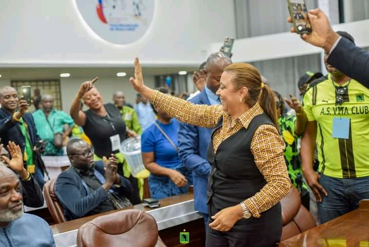 Maître Bestine Kazadi présidente de coordination de l’AS V. Club de Kinshasa a été réélue pour un second6 mandat,lors de l’assemblée générale extraordinaire et élective de l’équipe kinoise,tenue le mercredi 26 juillet 2023 au centre diocésain de Kinshasa.