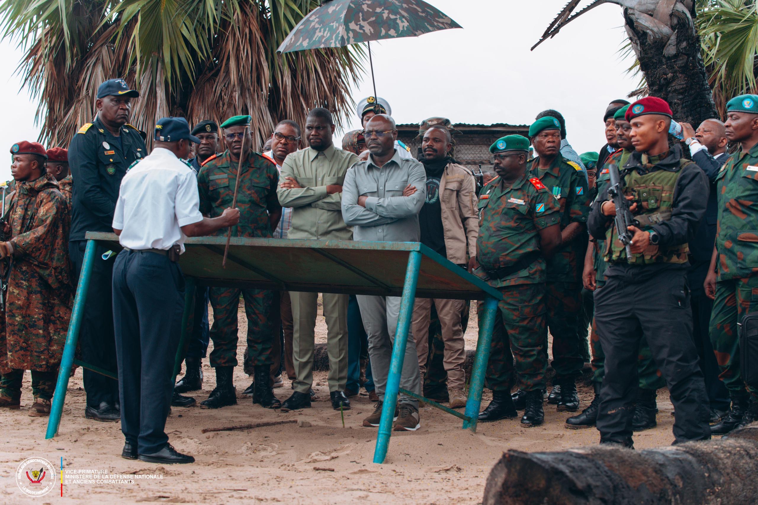 Le vice premier Ministre et ministre de la Défense nationale,Mr Guy Kabombo Muadiamvita,a effectué une visite de travail à la 141e base Navale de Banana ,en compagnie du gouverneur,et d’une délégation de hauts responsables militaires ce 20 janvier 2025.