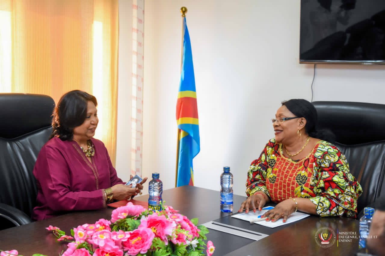 La Ministre du Genre, Famille et Enfant, Mireille Masangu Bibi Muloko a échangé, ce lundi 12 juin, dans son cabinet du travail, avec Madame Pramila Patten, Représentante spéciale du Secrétaire général des Nations-Unies chargée de la question des violences sexuelles commises en période de conflit.