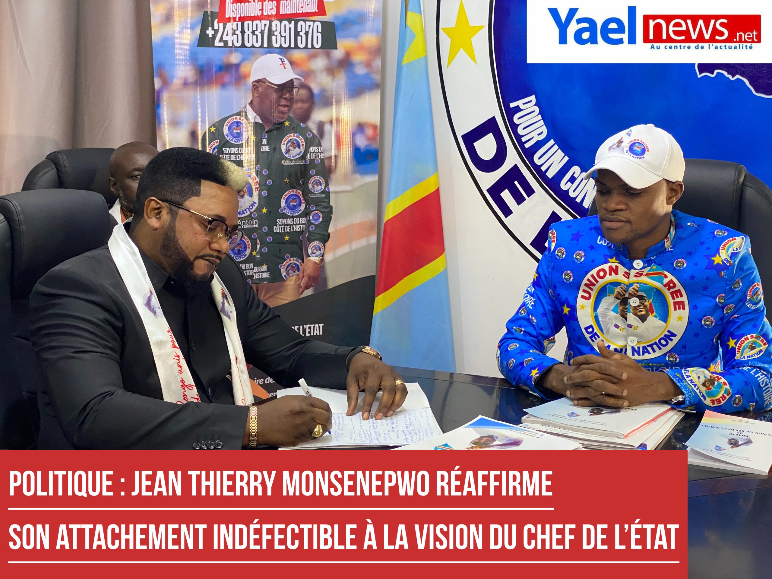 « En ce jour solennel, je mesure la portée et la responsabilité qui m’incombent en apposant ma signature au bas de la Charte de l’Union sacrée. J’y engage non seulement ma personne, mais aussi les institutions et structures que je représente : COBIL SA, dont j’ai l’honneur d’être Président du Conseil d’administration ; la Cellule présidentielle de changement de mentalité, où j’ai l’honneur de servir comme ambassadeur ; ainsi que les Forces d’éveil patriotique congolais, une ASBL résolument engagée aux côtés de nos Forces armées de la République démocratique du Congo pour la défense de l’intégrité territoriale et la consolidation de la paix », a déclaré Jean Thierry Monsenepwo.
