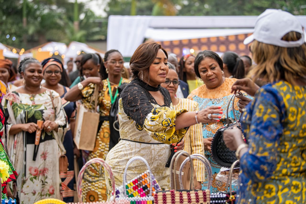 « À travers les différents pavillons et stands d’exposition tenus par des jeunes entrepreneurs locaux et nos différents sponsors, les Premières Dames ont pu apprécier la mise en valeur de la diversité culturelle et de la créativité artistique de la RDC », a-t-elle dit