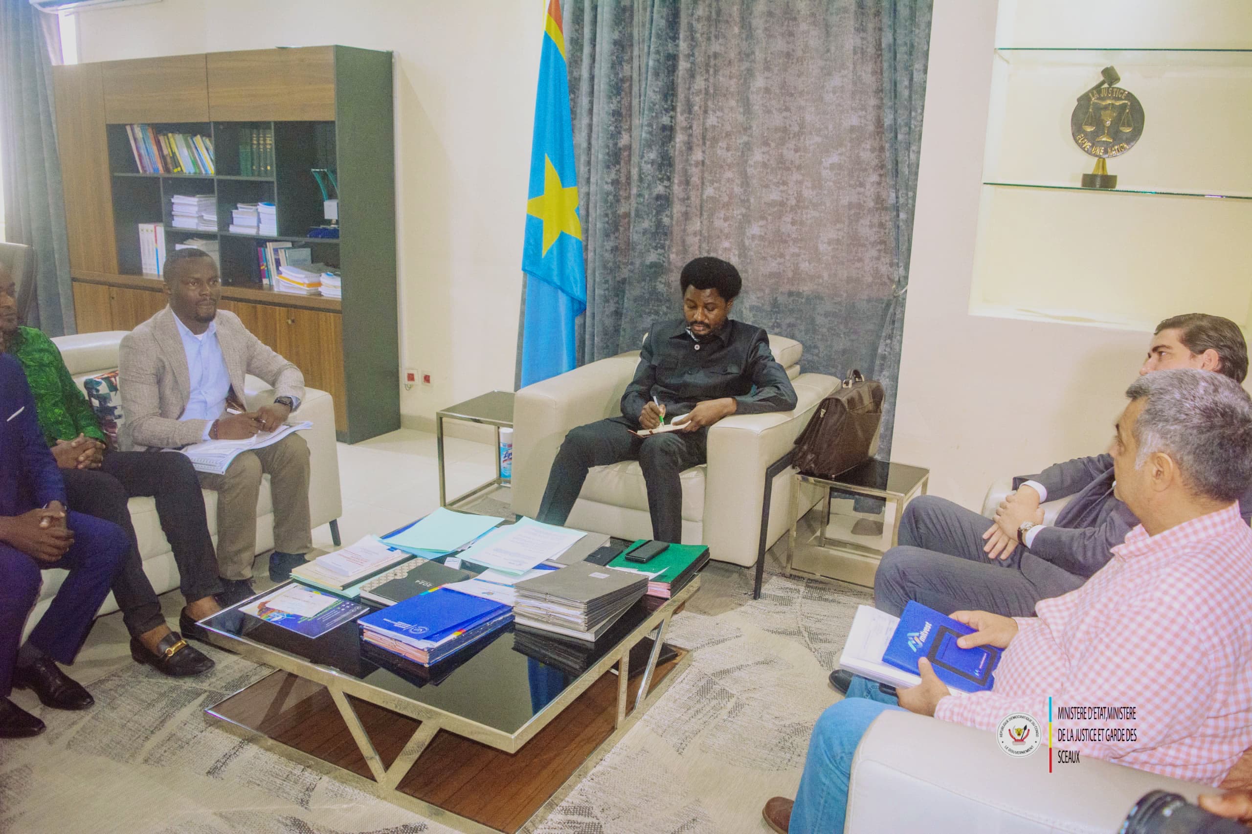 Le Ministre d’État, Ministre de la Justice et Garde des Sceaux, Constant Mutamba Tungunga a échangé ce mercredi 19 juin 2024 avec les agents sous traitants de la société MILVEST accrédités dans la réhabilitation du palais de la justice, sur les arriérés des leurs salariés et les mauvaises conditions de travail. Après avoir suivi avec attention les doléances de ces agents, le Ministre d’État, Ministre de la justice promet d’interpeller d’urgence les responsables de cette entreprise, enfin de faire appliquer les principes d’Etat des droits en RDC, tels que voulus par le Président de la République.